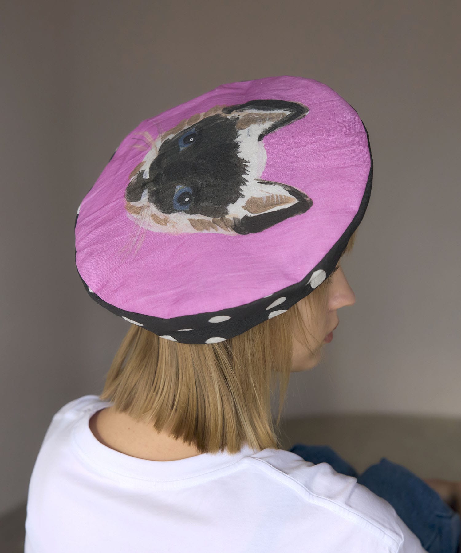ハリ感のあるお素材が形状を綺麗に作ってくれるシルエットも美しいベレー帽。