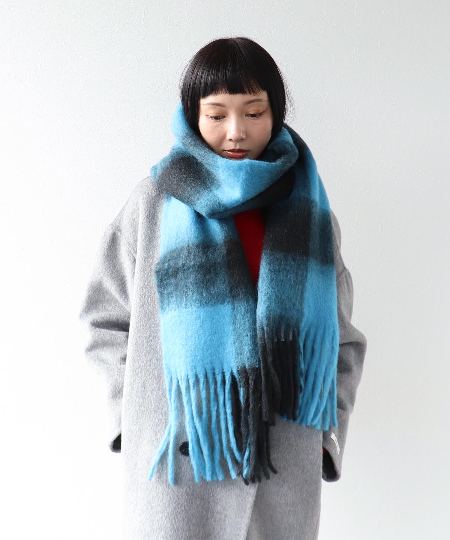 ツートーンのブロックチェックマフラー