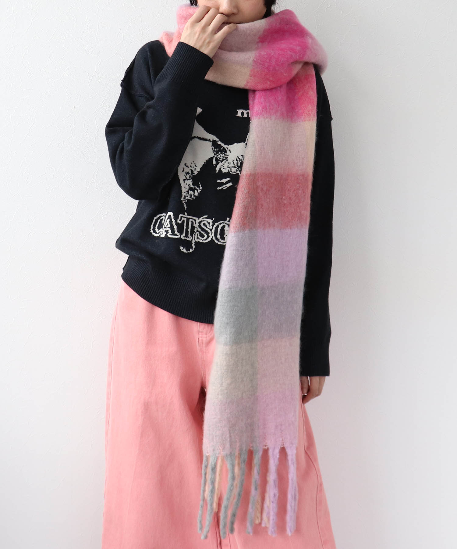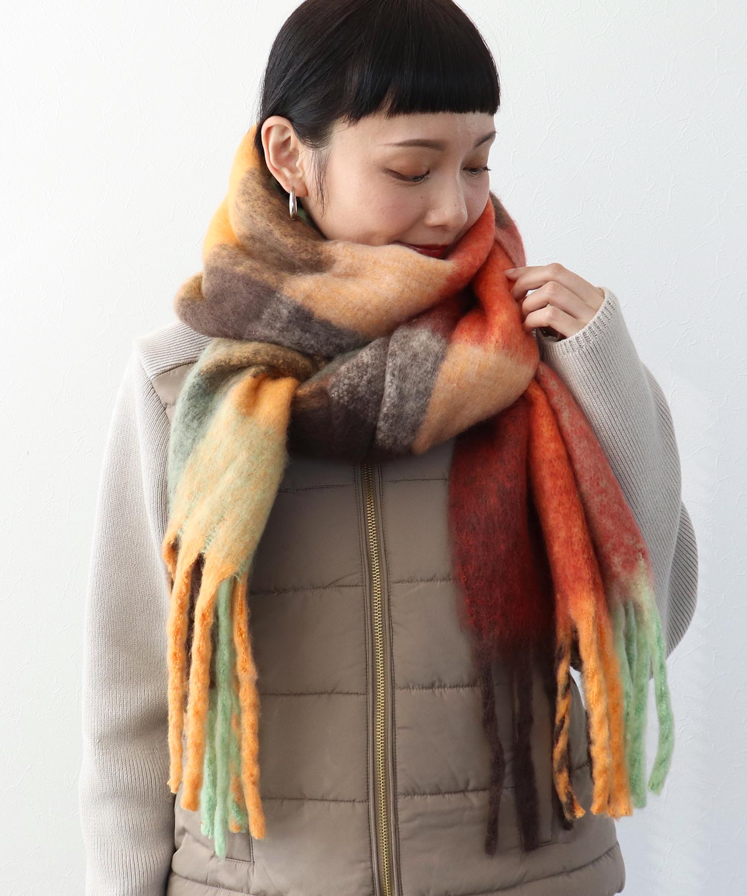 グラデーションのある美しい色柄が活きるブロックチェックのマフラー