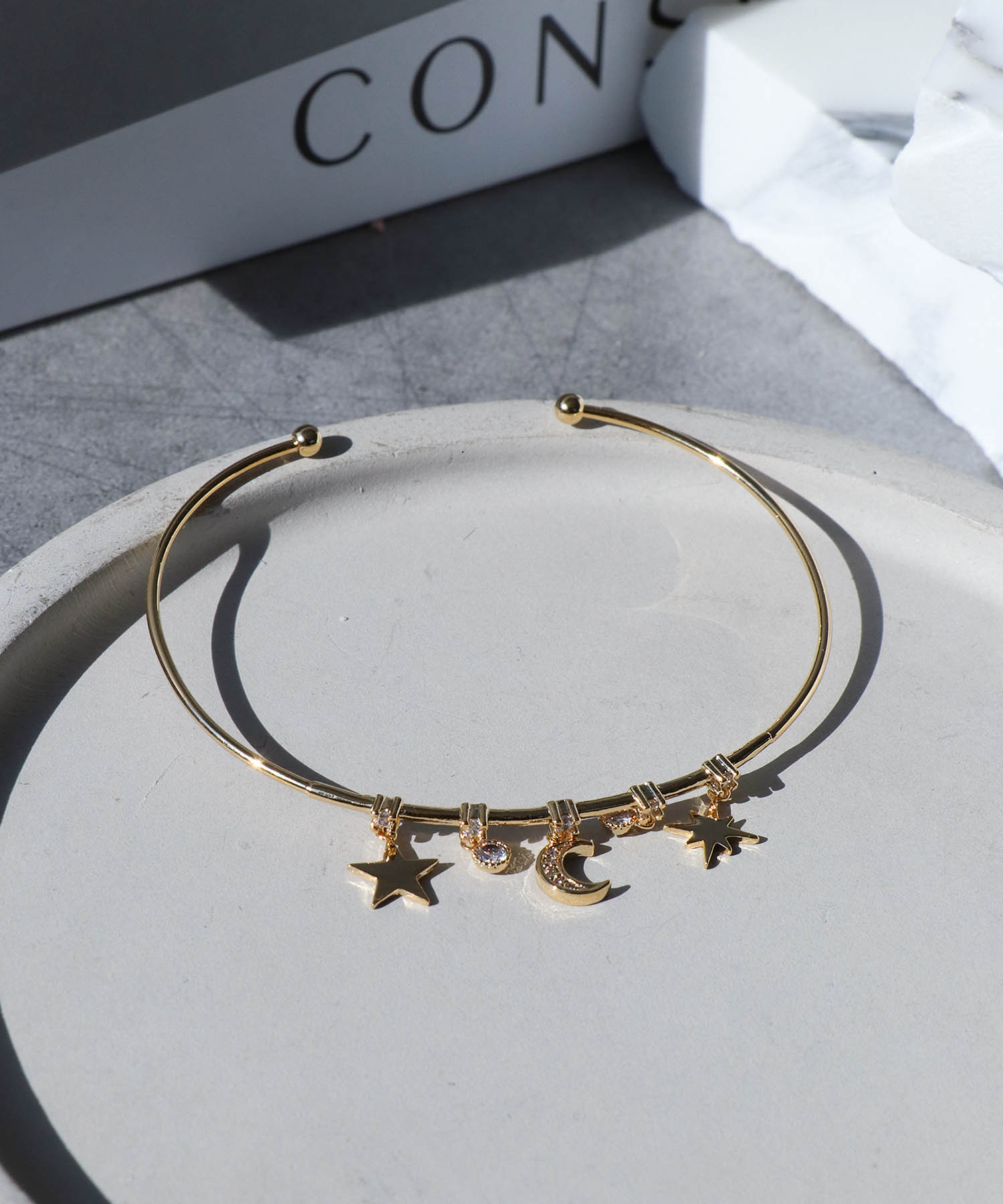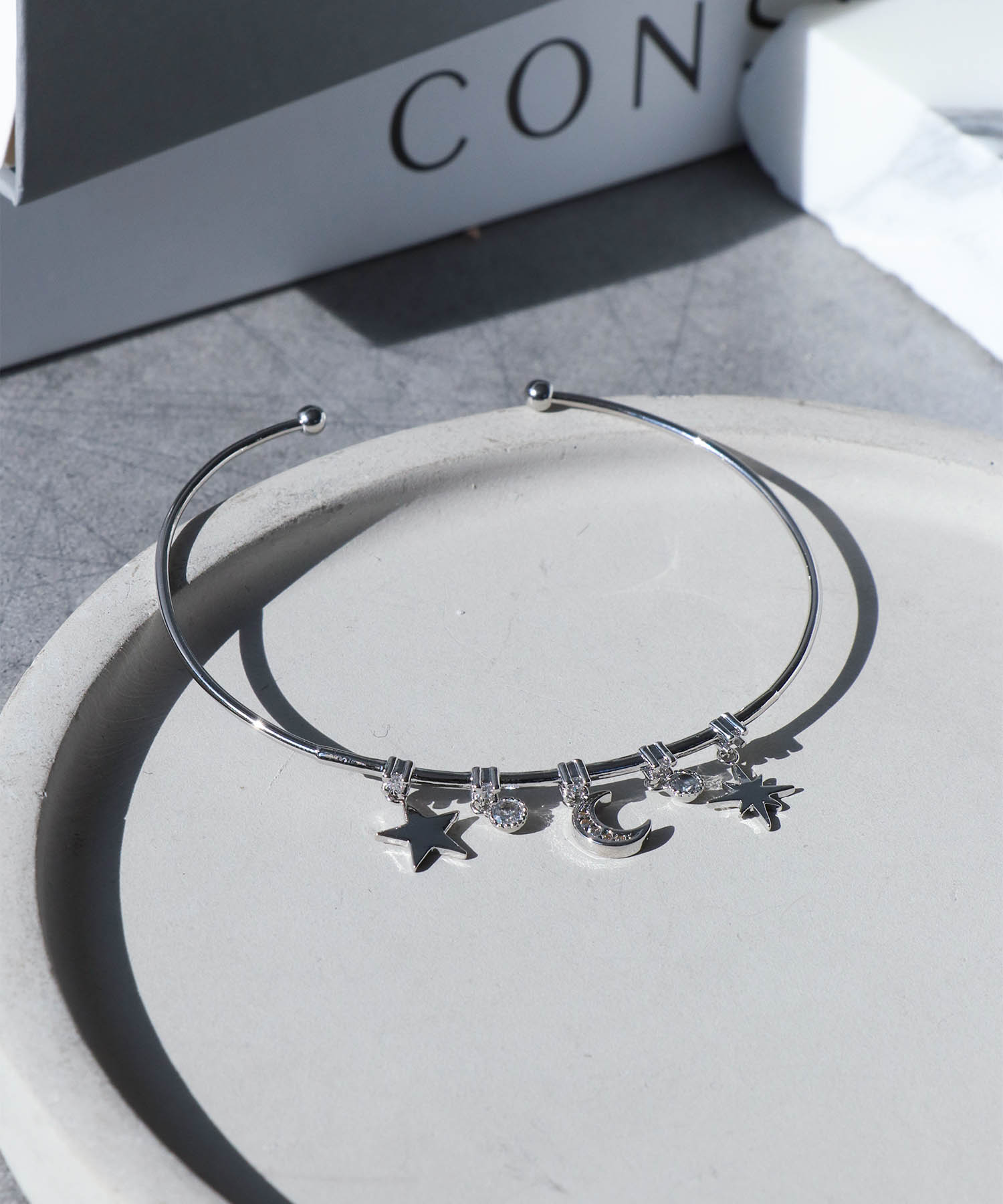 小ぶりな星モチーフとキュービックが繊細なバングルタイプのブレスレット。
