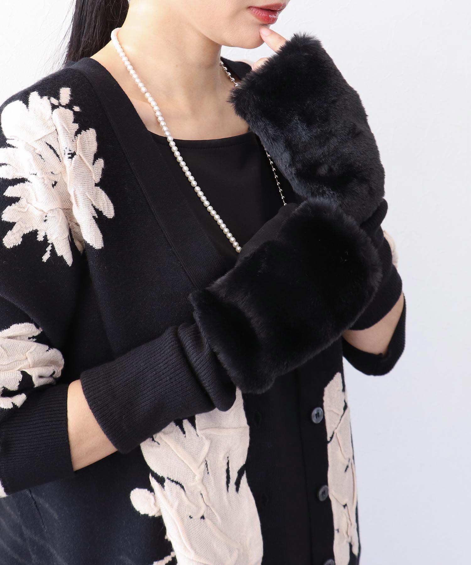 甲部分は柔らかなフェイクファーで冬らしいポイントに。
