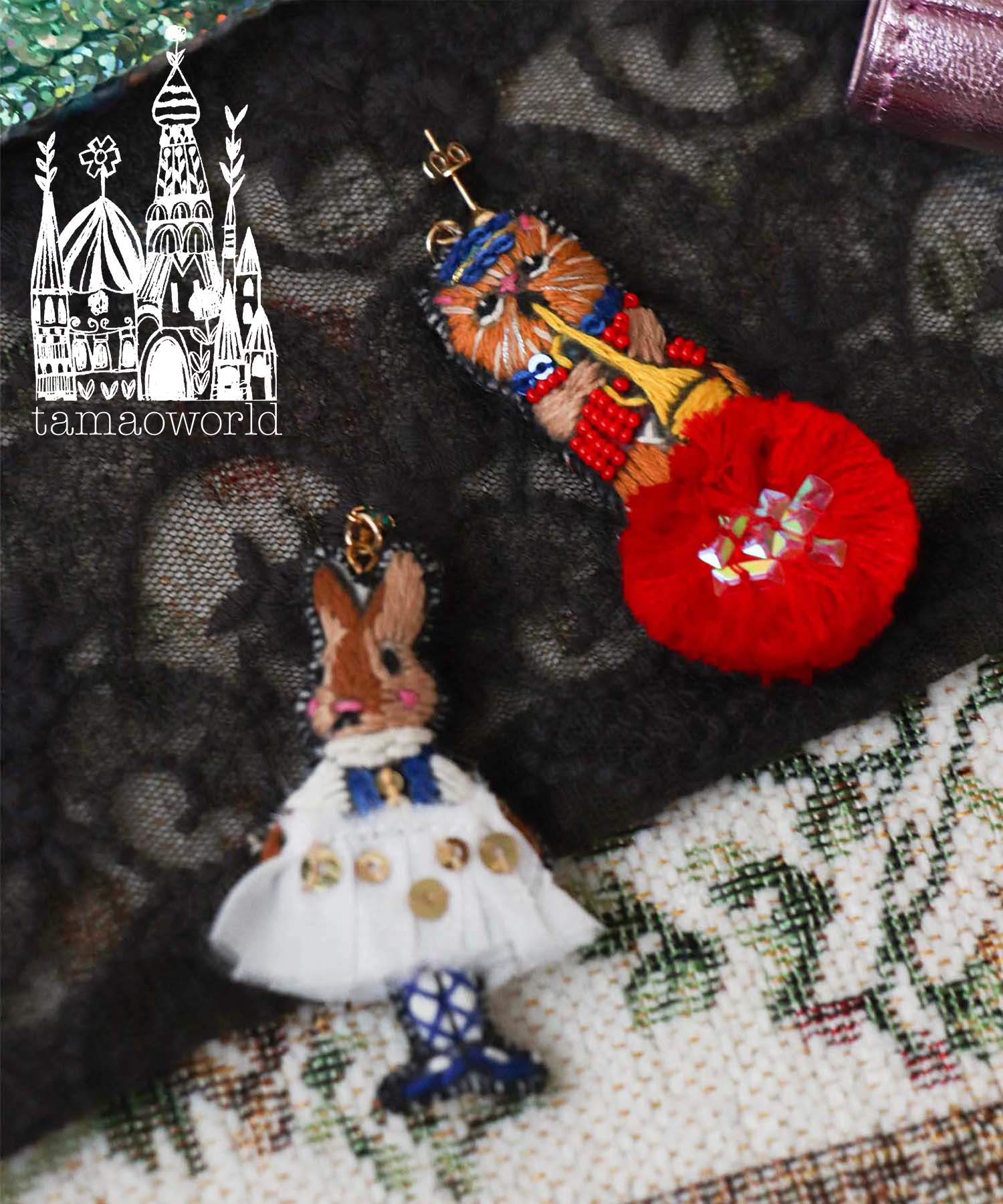 トランペット吹きとうさぎのダンサーの刺繍ピアス