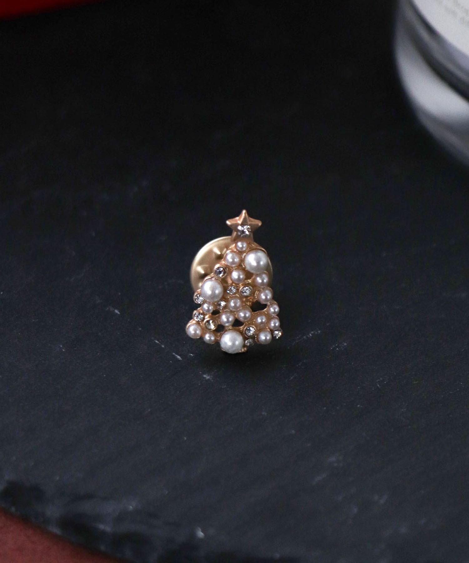 ビジュやパールが煌めくクリスマスツリーのタックピン☆