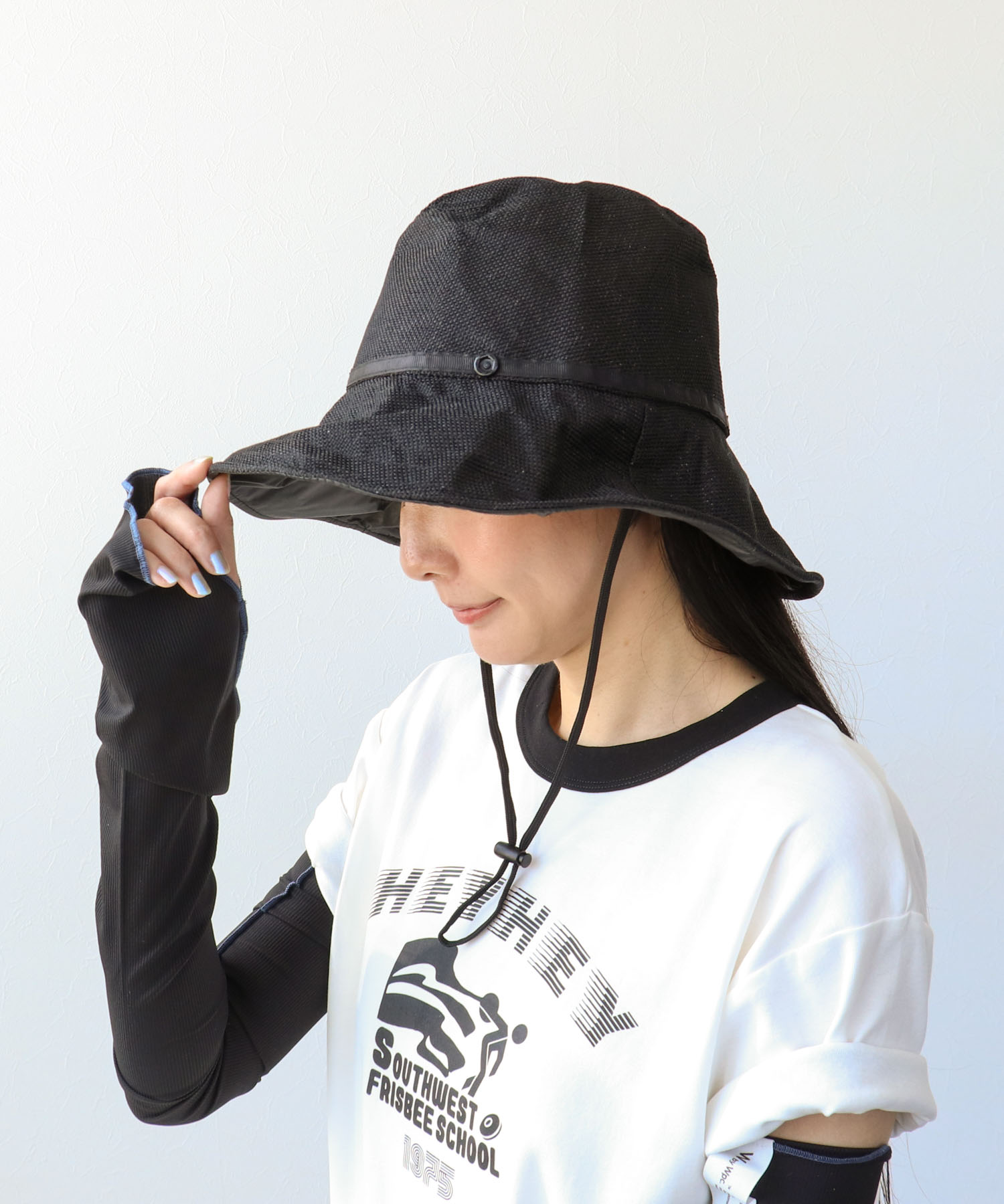 内側の生地(つば部分)にはUVカット率・遮光率100%・UPF50+の生地を使用。