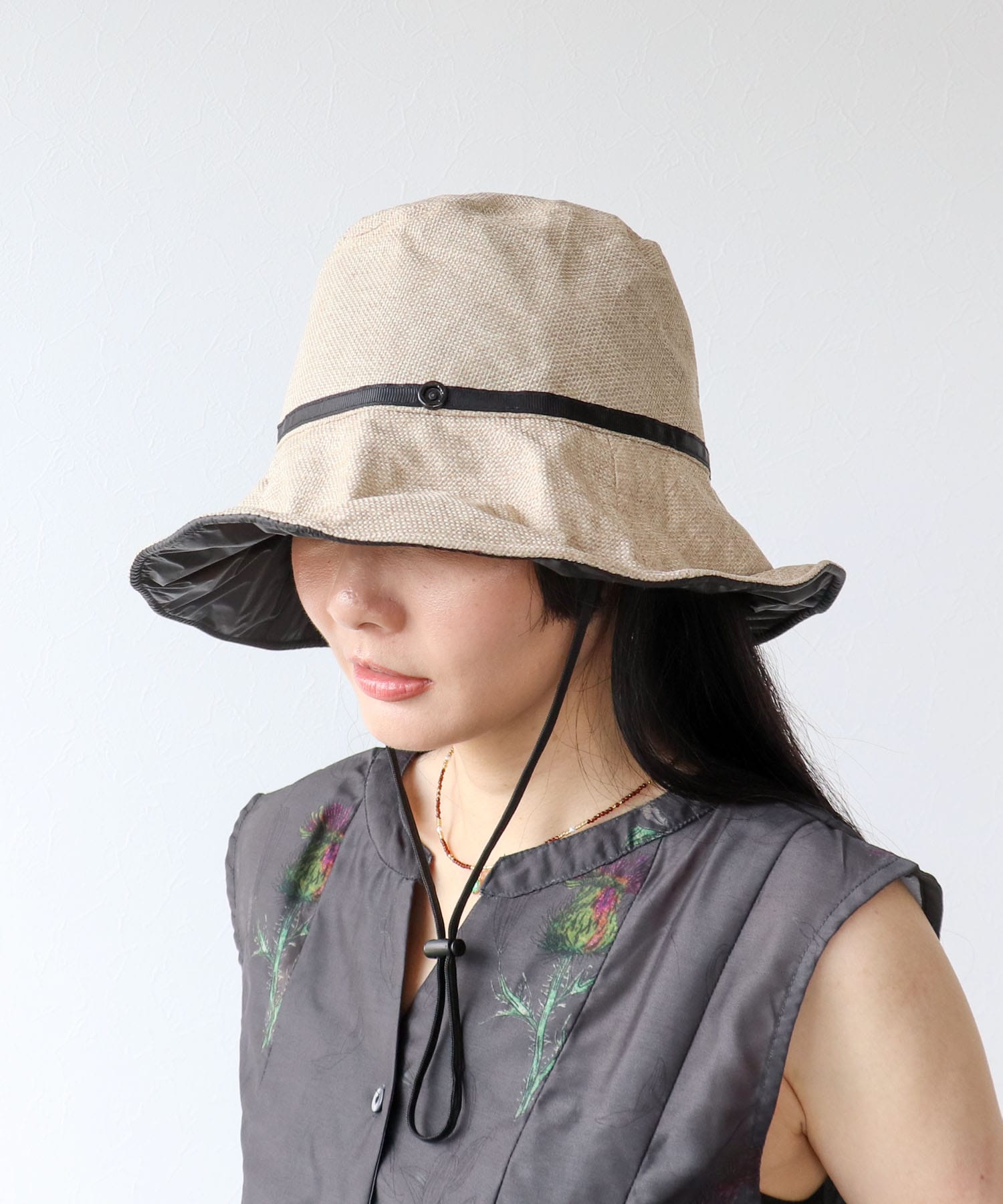 傘屋が作った、かぶる日傘】天然素材風の生地のUVハット