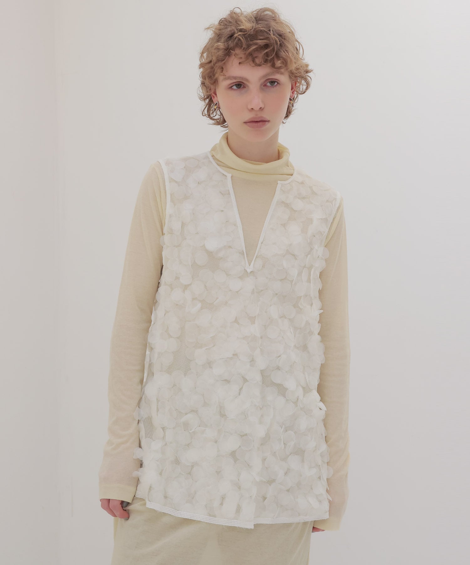 また素材が重なることにより胸元の透け感も緩和され、透け感が気になる方も安心して着用いただけます。