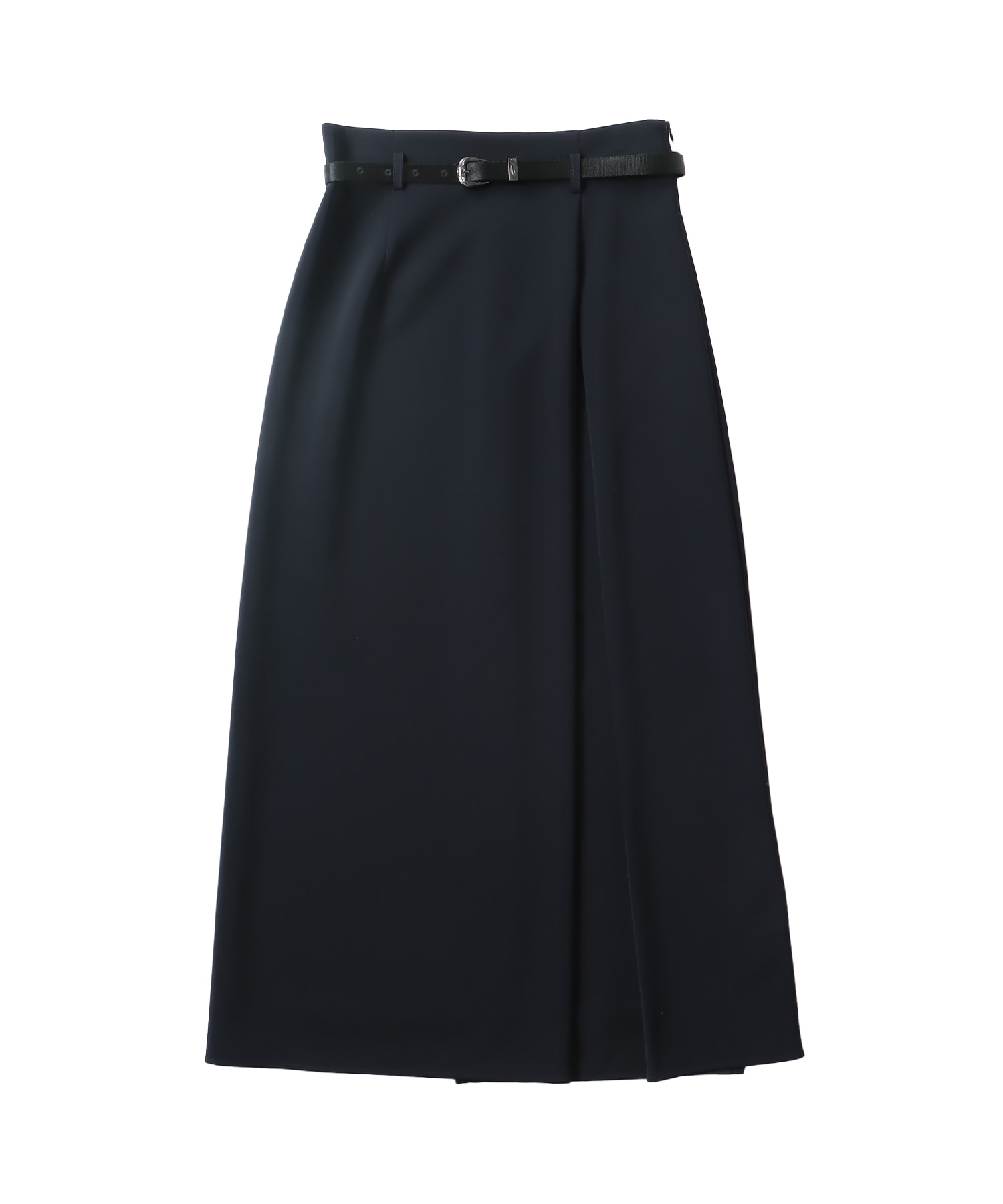 ポリエステルのダブルクロス素材に、ワンポイントでボックスプリーツを施したセミフレアロングスカート。
