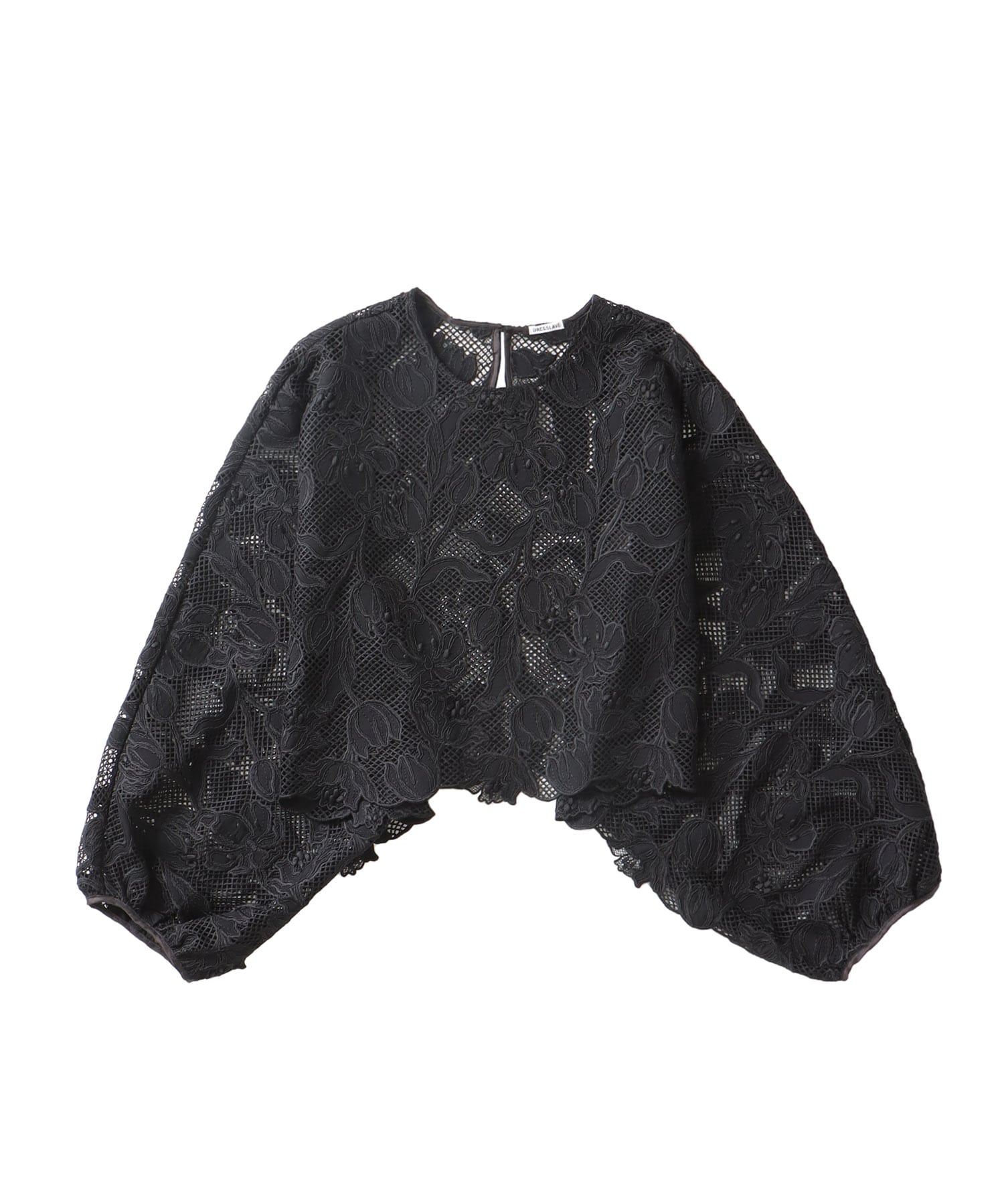 大胆なレースの表情が目を引く、ポンチョのようなドルマンスリーブデザインの主役ブラウス。